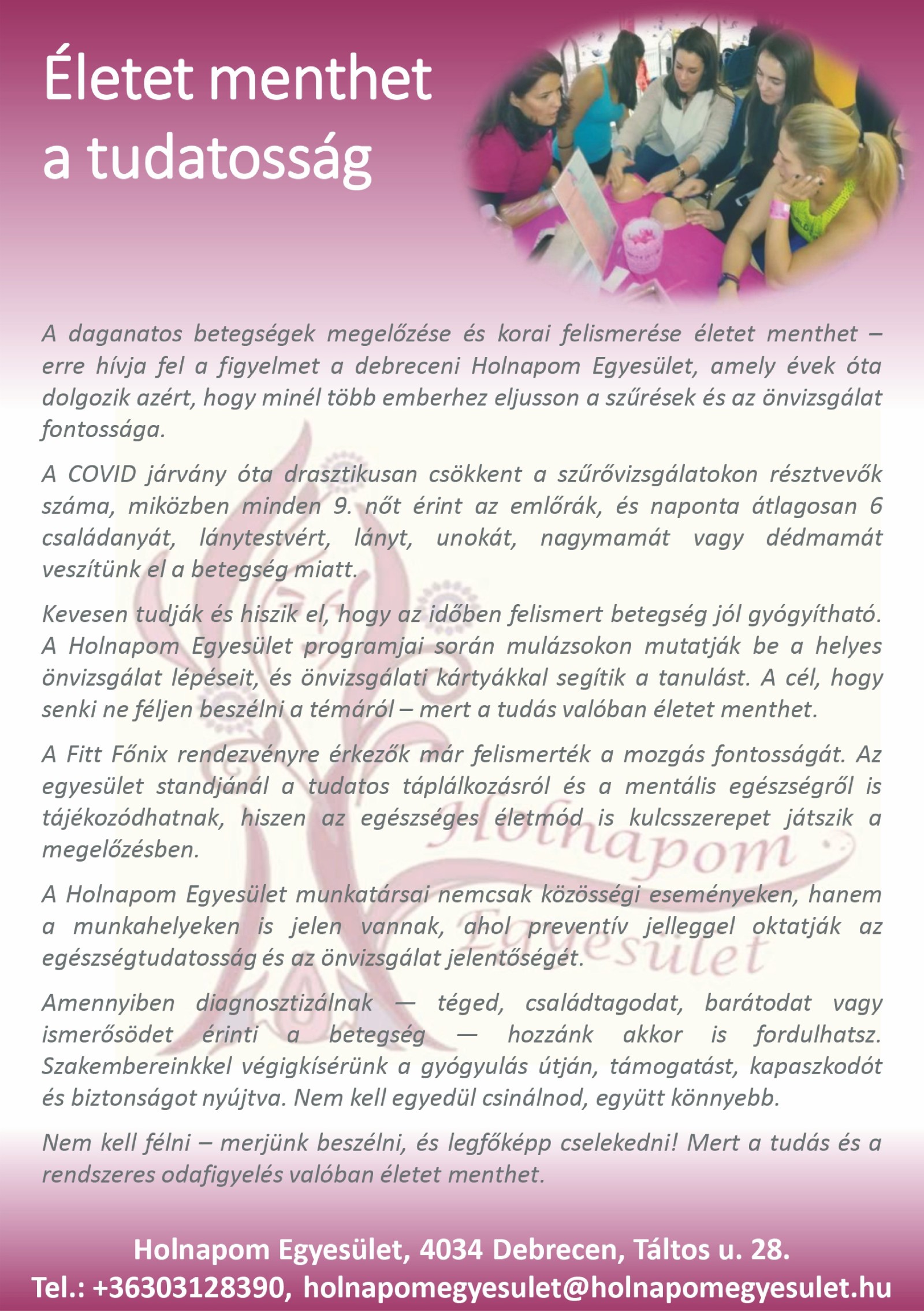 A FőnixFitt egy hagyományteremtő szándékkal létrehozott szabadidő- és tömegsport rendezvény, amelyet immár hetedik alkalommal rendezünk meg az újévi fogadalmak időszakában. Az esemény célja a sport, a mozgás és a testedzés népszerűsítése, valamint az egészségmegőrzés fontosságának hangsúlyozása. Debrecen városának támogatásával, a Debreceni Egyetem Sporttudományi Intézetével és a Sportdiagnosztikai, Életmód- és Terápiás Központtal együttműködve olyan programot kínálunk, amely a régióban és az ország második legnagyobb városában is hiánypótlónak számít.